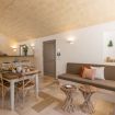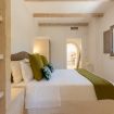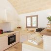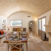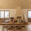 Gli interni della villa, caratterizzati da armoniose pietre a vista, si sviluppano interamente al pianterreno. Un ampio living accoglie gli ospiti, con salone, area pranzo e una cucina super accessoriata. La zona notte comprende 2 camere matrimoniali e 1 camera doppia con letti unibili, tutte dotate di bagno ensuite con doccia. All’esterno, il Trullo Suite offre una piccola spa privata con bagno turco.