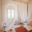 L'abitazione al suo interno accoglie i visitatori con un ampio salone open space con reparto cucina, interamente attrezzata, ampio tavolo da pranzo per 10 persone, angolo salotto/tv con camino, divano/letto matrimoniale. La zona notte si dipana agli estremi del salone: nella zona trullo vi è un meraviglioso baldacchino matrimoniale in ferro battuto, con bagno ensuite ed è la parte più antica e affascinante della casa. L'ala sinistra, ospita una camera matrimoniale (1.40x2.00mt) con bagno adiacente e una camera quadrupla con lettini a castello e bagno ensuite.